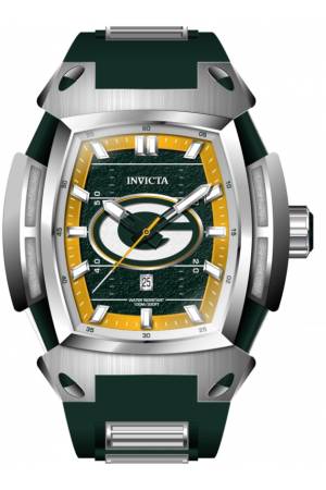 Band For Invicta NFL 42806, Band Material Silicone, Stainless Steel, Band Color Green, Steel, Band Width 31 mm, Band Length 210 mm, Buckle Type Buckle, Clasp Type