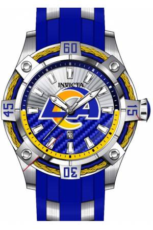 Band For Invicta NFL 43324, Band Material Silicone, Stainless Steel, Band Color Blue, Steel, Band Width 26 mm, Band Length 210 mm, Buckle Type Buckle, Clasp Type