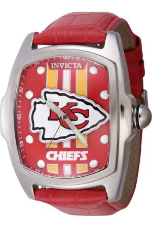 Band For Invicta NFL 45463, Band Material Leather, Band Color Red, Band Width 26 mm, Band Length 210 mm, Buckle Type Buckle, Clasp Type