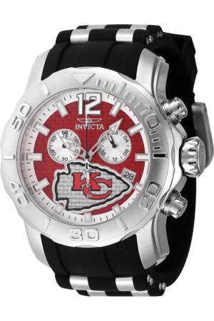 Band For Invicta NFL 48008, Band Material Silicone, Stainless Steel, Band Color Black, Steel, Band Width 26 mm, Band Length 220 mm, Buckle Type Buckle, Clasp Type Buckle