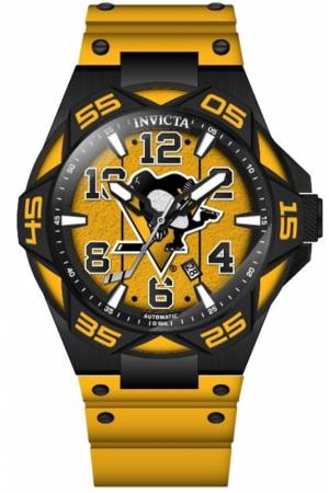 Band For Invicta NHL 42270, Band Material Silicone, Stainless Steel, Band Color Yellow, Black, Band Width 30 mm, Band Length 210 mm, Buckle Type Buckle, Clasp Type