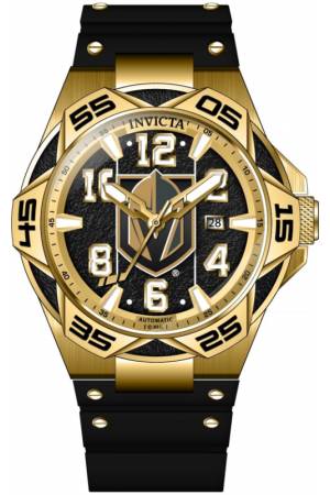 Band For Invicta NHL 42273, Band Material Silicone, Stainless Steel, Band Color Black, Gold, Band Width 30 mm, Band Length 210 mm, Buckle Type Buckle, Clasp Type