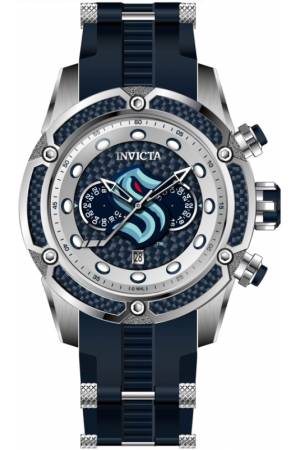 Band For Invicta NHL 42284, Band Material Silicone, Stainless Steel, Band Color Blue, Steel, Band Width 26 mm, Band Length 210 mm, Buckle Type Buckle, Clasp Type
