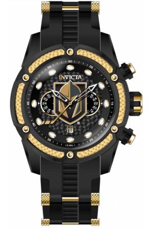 Band For Invicta NHL 42293, Band Material Silicone, Stainless Steel, Band Color Black, Gold, Band Width 26 mm, Band Length 210 mm, Buckle Type Buckle, Clasp Type