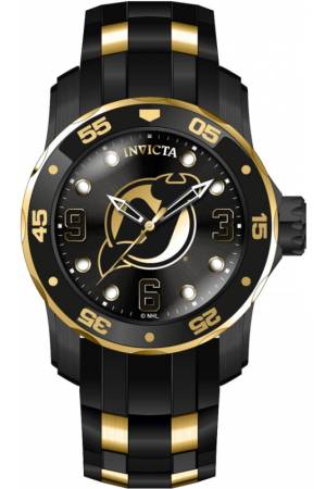 Band For Invicta NHL 42310, Band Material Silicone, Stainless Steel, Band Color Black, Gold, Band Width 26 mm, Band Length 210 mm, Buckle Type Buckle, Clasp Type