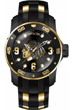 Band For Invicta NHL 42315, Band Material Silicone, Stainless Steel, Band Color Black, Gold, Band Width 26 mm, Band Length 210 mm, Buckle Type Buckle, Clasp Type