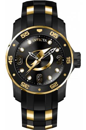 Band For Invicta NHL 42319, Band Material Silicone, Stainless Steel, Band Color Black, Gold, Band Width 26 mm, Band Length 210 mm, Buckle Type Buckle, Clasp Type