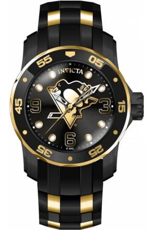 Band For Invicta NHL 42322, Band Material Silicone, Stainless Steel, Band Color Black, Gold, Band Width 26 mm, Band Length 210 mm, Buckle Type Buckle, Clasp Type