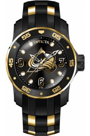 Band For Invicta NHL 42323, Band Material Silicone, Stainless Steel, Band Color Black, Gold, Band Width 26 mm, Band Length 210 mm, Buckle Type Buckle, Clasp Type