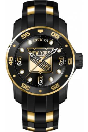 Band For Invicta NHL 42324, Band Material Silicone, Stainless Steel, Band Color Black, Gold, Band Width 26 mm, Band Length 210 mm, Buckle Type Buckle, Clasp Type