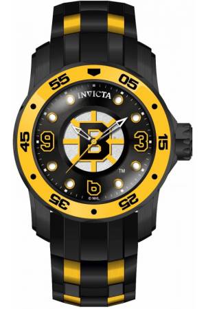 Band For Invicta NHL 42647, Band Material Silicone, Stainless Steel, Band Color Yellow, Black, Band Width 26 mm, Band Length 210 mm, Buckle Type Buckle, Clasp Type