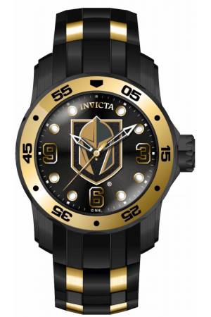 Band For Invicta NHL 42654, Band Material Silicone, Stainless Steel, Band Color Black, Gold, Band Width 26 mm, Band Length 210 mm, Buckle Type Buckle, Clasp Type