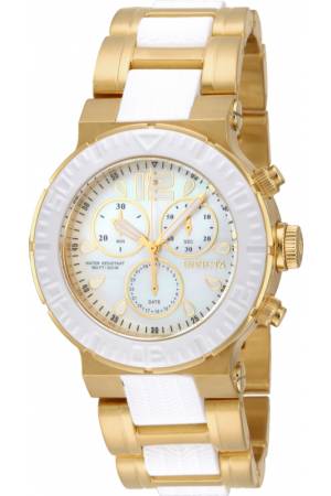 Band For Invicta Ocean Reef 15500, Band Material Stainless Steel, Polyurethane, Band Color Gold, White, Band Width 24 mm, Band Length 210 mm, Buckle Type Butterfly, Clasp Type Butterfly