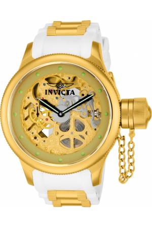 Band For Invicta Pro Diver 12116, Band Material Polyurethane, Stainless Steel, Band Color White, Gold, Band Width 26 mm, Band Length 235 mm, Buckle Type Buckle, Clasp Type Regular