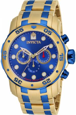 Band For Invicta Pro Diver 15590, Band Material Stainless Steel, Band Color Gold, Blue, Band Width 26 mm, Band Length 225 mm, Buckle Type Fold over safety, Clasp Type Safety