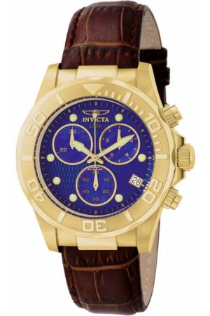 Band For Invicta Pro Diver 1722, Band Material Leather, Band Color Brown, Band Width 22 mm, Band Length 215 mm, Buckle Type Buckle, Clasp Type Regular