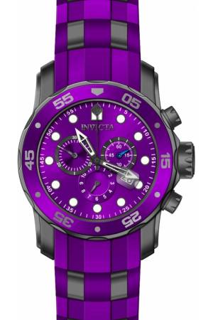 Band For Invicta Pro Diver 18198, Band Material Stainless Steel, Polyurethane, Band Color Gunmetal, Purple, Band Width 26 mm, Band Length 225 mm, Buckle Type Buckle, Clasp Type Regular