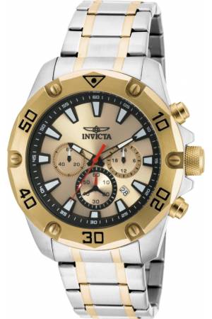 Band For Invicta Pro Diver 20012, Band Material Stainless Steel, Band Color Steel, Gold, Band Width 24 mm, Band Length 215 mm, Buckle Type Fold over safety, Clasp Type Safety