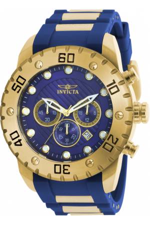 Band For Invicta Pro Diver 20280, Band Material Silicone, Stainless Steel, Band Color Blue, Gold, Band Width 26 mm, Band Length 215 mm, Buckle Type Buckle, Clasp Type Regular