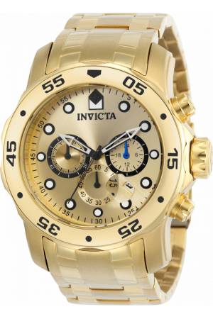 Band For Invicta Pro Diver 21924, Band Material Stainless Steel, Band Color Gold, Band Width 18 mm, Band Length 195 mm, Buckle Type Fold over safety, Clasp Type Safety