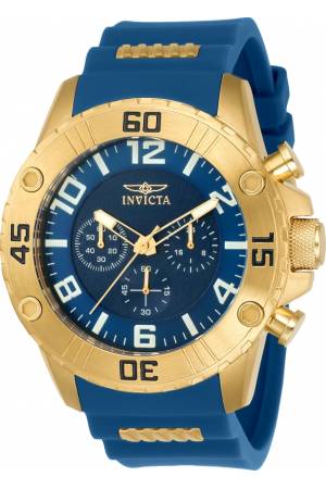 Band For Invicta Pro Diver 22699, Band Material Silicone, Stainless Steel, Band Color Blue, Gold, Band Width 24 mm, Band Length 210 mm, Buckle Type Buckle, Clasp Type Regular