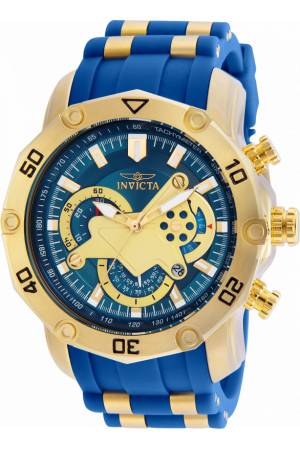 Band For Invicta Pro Diver 22798, Band Material Silicone, Stainless Steel, Band Color Blue, Gold, Band Width 26 mm, Band Length 199 mm, Buckle Type Buckle, Clasp Type Regular