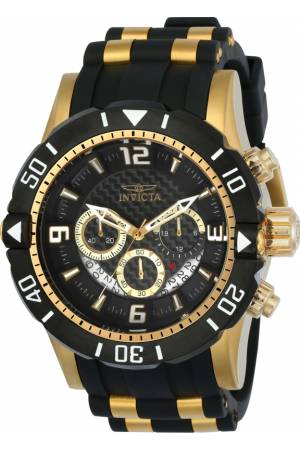 Band For Invicta Pro Diver 23702, Band Material Silicone, Stainless Steel, Band Color Black, Gold, Band Width 26 mm, Band Length 200 mm, Buckle Type Buckle, Clasp Type Regular