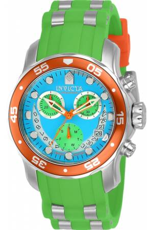 Band For Invicta Pro Diver 24181, Band Material Stainless Steel, Silicone, Band Color Steel, Orange, Green, Band Width 20 mm, Band Length 189 mm, Buckle Type Buckle, Clasp Type Regular