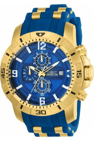 Band For Invicta Pro Diver 24966, Band Material Silicone, Stainless Steel, Band Color Blue, Gold, Band Width 26 mm, Band Length 215 mm, Buckle Type Buckle, Clasp Type Regular