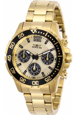 Band For Invicta Pro Diver 25747, Band Material Stainless Steel, Band Color Gold, Band Width 18 mm, Band Length 182.5 mm, Buckle Type Fold over safety, Clasp Type Regular