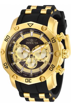 Band For Invicta Pro Diver 30029, Band Material Polyurethane, Silicone, Stainless Steel, Band Color Black, Gold, Band Width 26 mm, Band Length 210 mm, Buckle Type Buckle, Clasp Type Regular