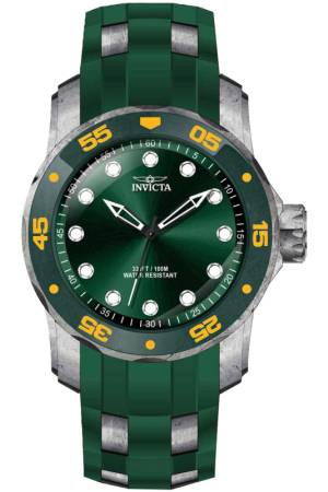 Band For Invicta Pro Diver 46362, Band Material Silicone, Stainless Steel, Band Color Green, Steel, Band Width 26 mm, Band Length 200.25 mm, Buckle Type Buckle, Clasp Type