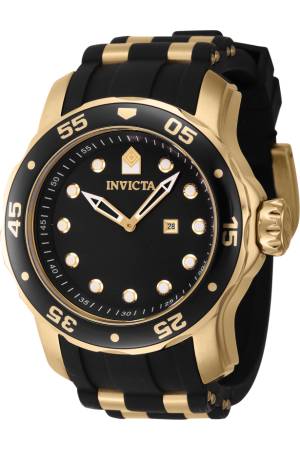 Band For Invicta Pro Diver 46972, Band Material Silicone, Stainless Steel, Band Color Black, Gold, Band Width 26 mm, Band Length 220 mm, Buckle Type Buckle, Clasp Type Buckle