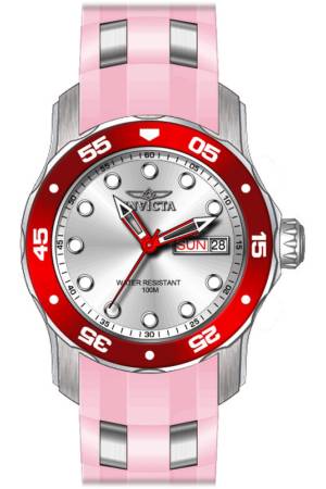 Band For Invicta Pro Diver 47024, Band Material Silicone, Stainless Steel, Band Color Pink, Steel, Band Width 20 mm, Band Length 210 mm, Buckle Type Buckle, Clasp Type Regular