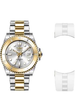 Band For Invicta Pro Diver 48795, Band Material Silicone, Stainless Steel, Band Color White, Gold, Steel, Band Width 20 mm, Band Length 166 mm, Buckle Type Fold over safety, Clasp Type Buckle, Safety