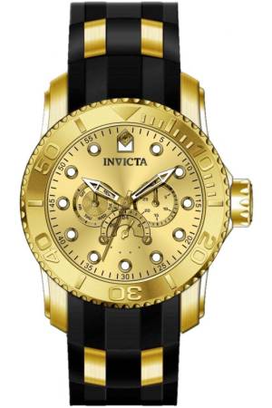 Band For Invicta Pro Diver 50119, Band Material Silicone, Stainless Steel, Band Color Black, Gold, Band Width 26 mm, Band Length 220 mm, Buckle Type Buckle, Clasp Type Buckle