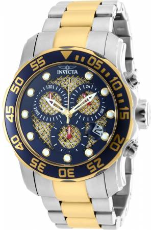 Band For Invicta Pro Diver 90174, Band Material Stainless Steel, Band Color Gold, Steel, Band Width 26 mm, Band Length 210 mm, Buckle Type Fold over safety, Clasp Type Deployment, Safety
