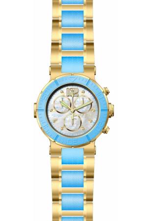 Band For Invicta Reserve 0173, Band Material Polyurethane, Stainless Steel, Band Color Light Blue, Gold, Band Width 24 mm, Band Length 200 mm, Buckle Type Butterfly push button, Clasp Type Deployment, Push Button