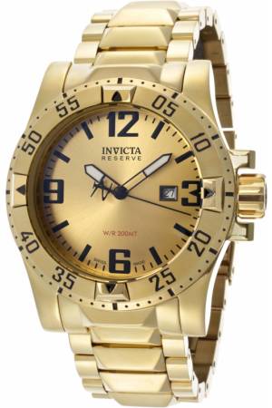 Band For Invicta Reserve 14036, Band Material Stainless Steel, Band Color Gold, Band Width 26 mm, Band Length 210 mm, Buckle Type Fold over safety, Clasp Type Deployment, Safety