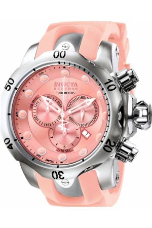 Band For Invicta Reserve 1407, Band Material Silicone, Stainless Steel, Band Color Pink, Steel, Band Width 26 mm, Band Length 220 mm, Buckle Type Buckle, Clasp Type Regular