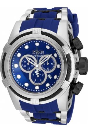 Band For Invicta Reserve 14403, Band Material Stainless Steel, Polyurethane, Band Color Steel, Gunmetal, Blue, Band Width 36.8 mm, Band Length 229 mm, Buckle Type Buckle, Clasp Type Regular
