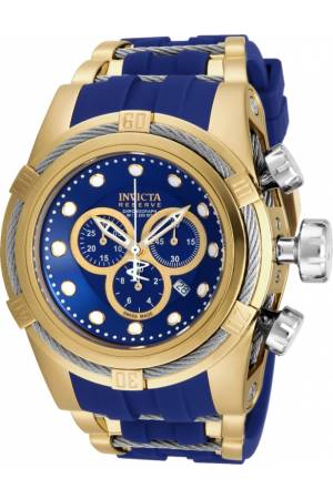 Band For Invicta Reserve 14405, Band Material Stainless Steel, Polyurethane, Band Color Steel, Gold, Navy Blue, Band Width 36.8 mm, Band Length 229 mm, Buckle Type Buckle, Clasp Type Regular