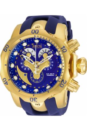Band For Invicta Reserve 14465, Band Material Polyurethane, Stainless Steel, Band Color Blue, Gold, Band Width 26 mm, Band Length 210 mm, Buckle Type Buckle, Clasp Type Regular