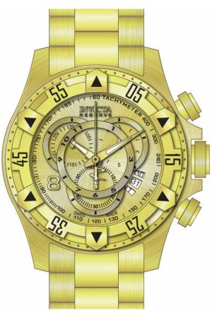 Band For Invicta Reserve 14474, Band Material Stainless Steel, Band Color Gold, Band Width 26 mm, Band Length 210 mm, Buckle Type Fold over safety, Clasp Type Deployment, Safety