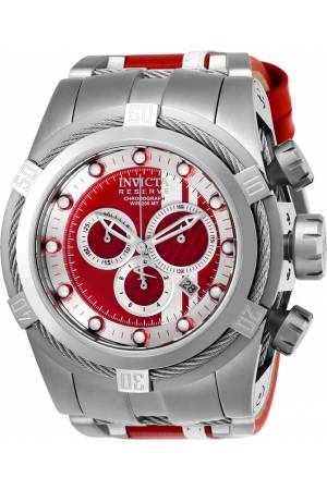 Band For Invicta Reserve 26468, Band Material Leather, Stainless Steel, Band Color Red, White, Steel, Band Width 30.5 mm, Band Length 210 mm, Buckle Type Buckle, Clasp Type Regular