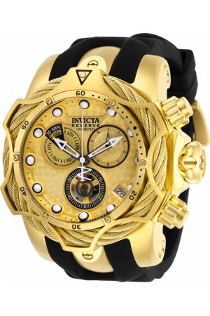 Band For Invicta Reserve 27708, Band Material Stainless Steel, Silicone, Band Color Gold, Black, Band Width 26 mm, Band Length 210 mm, Buckle Type Buckle, Clasp Type Regular