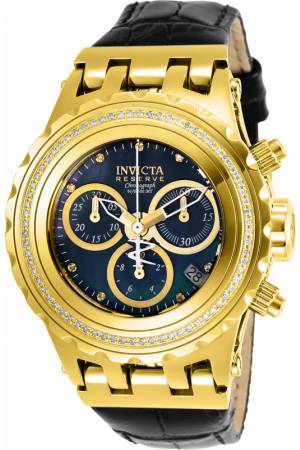 Band For Invicta Reserve 29238, Band Material Leather, Stainless Steel, Band Color Black, Gold, Band Width 25 mm, Band Length 180 mm, Buckle Type Buckle, Clasp Type Regular