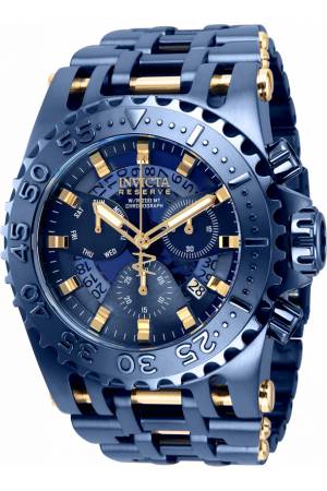 Band For Invicta Reserve 30120, Band Material Stainless Steel, Band Color Dark Blue, Gold, Band Width 35.6 mm, Band Length 210 mm, Buckle Type Fold over safety, Clasp Type Deployment, Safety