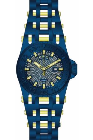 Band For Invicta Reserve 34419, Band Material Stainless Steel, Band Color Dark Blue, Gold, Band Width 35.6 mm, Band Length 210 mm, Buckle Type Fold over safety, Clasp Type Deployment, Safety