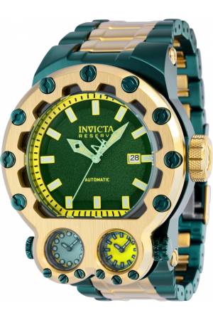 Band For Invicta Reserve 37556, Band Material Stainless Steel, Band Color Green, Gold, Band Width 34.5 mm, Band Length 210 mm, Buckle Type Fold over safety, Clasp Type Deployment, Safety